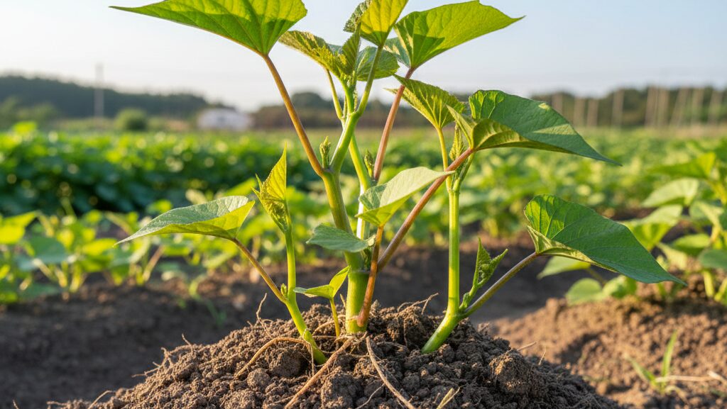 窒素は植物の葉や茎を大きくする成分ですが、これが多すぎると、植物体内の栄養バランスが崩れます。苗の段階で窒素過多になると、茎ばかりが太くて柔らかく、節間が間延びした「徒長苗」になってしまいます。このような苗を畑に植えると、地上部の茎葉ばかりがジャングルのように旺盛に茂り、肝心の地下部の芋が全く太らない、いわゆる「つるボケ」という現象を引き起こす原因になります。