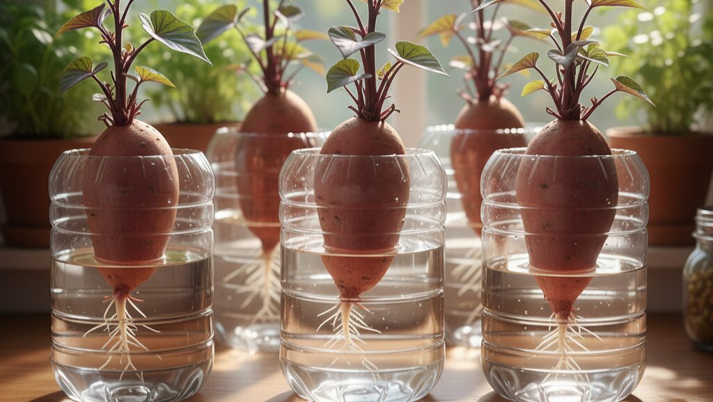 | 2. 種芋の選定 | 水耕栽培には、あまり大きすぎる芋は向きません。ペットボトルの口にフィットする、細身で小ぶりな芋(S〜Mサイズ、200g前後)を選びましょう。傷がなく、硬く引き締まったものが適しています。 |