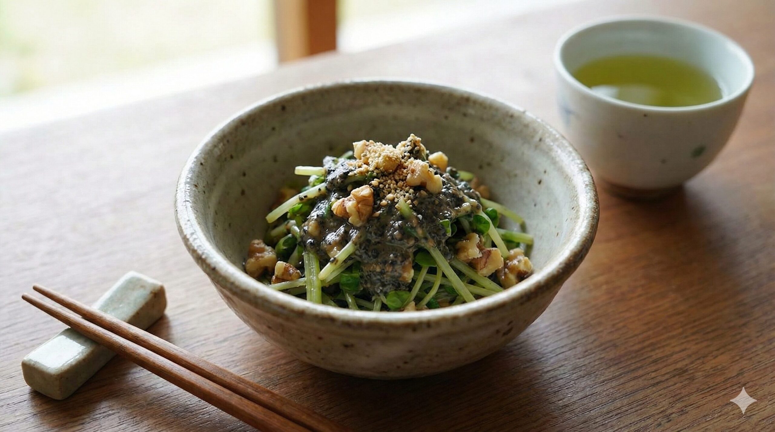 「生で食べるのはちょっと香りが強すぎるかも…」という方に、私が一番おすすめしたい最強のレシピがあります。それが「わき芽のくるみゴマ和え」です。