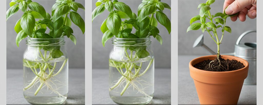 収穫(摘心)の際に出た「茎」(多くの人が廃棄する部分)は、実は「無料の新しい苗」そのものです。これを使わない手はありません。バジルは驚くほど簡単に根が出ます。