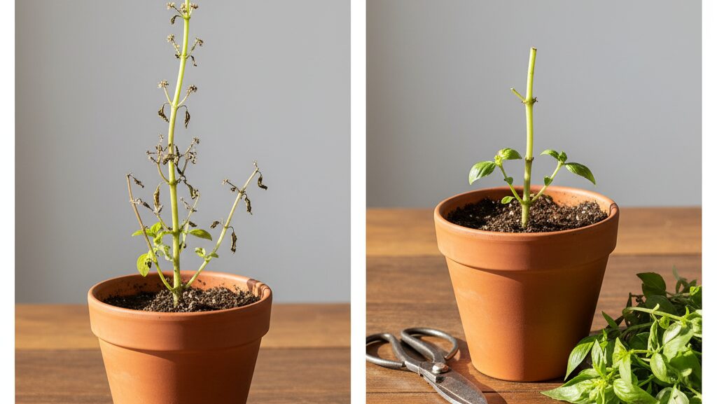 つまり、バジル栽培の成功は、最初の「摘心」を正しいタイミング(背丈20cm)で、正しい位置(地面から数えて3〜4節目の脇芽の上)で、勇気を持って行えるかどうかにかかっています。「もったいない」とためらってはいけません(笑)。