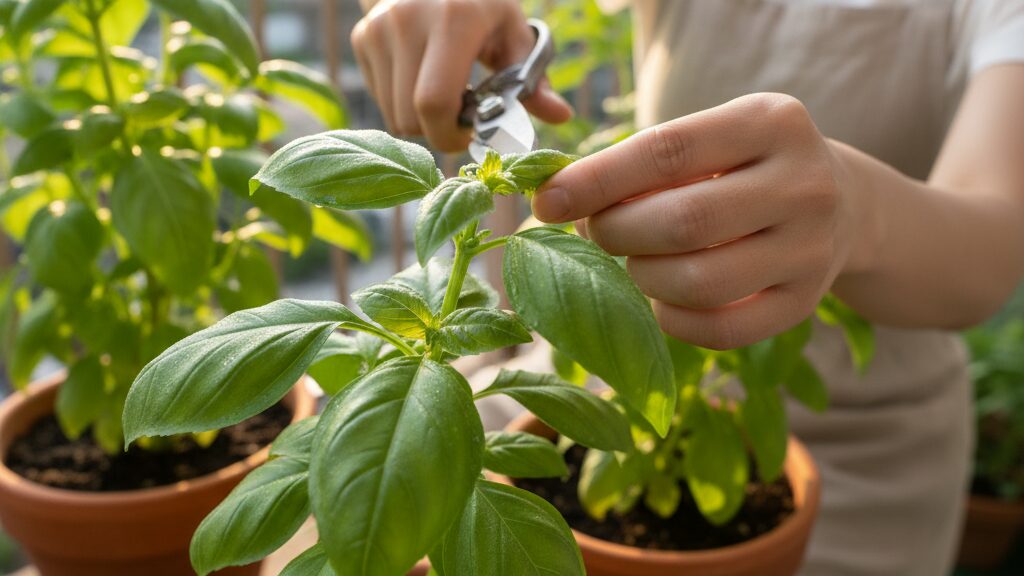 ここでは、バジルを初夏から霜が降りる晩秋まで、長く、たくさん楽しむための基本的な収穫テクニック、その核心部分を紹介しますね。