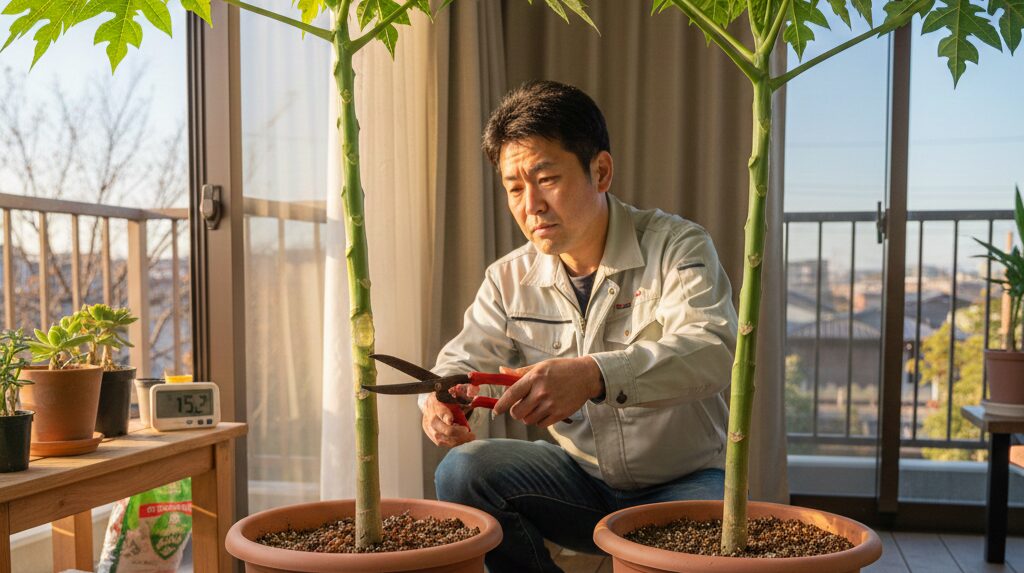 本格的な冬が来る前に、私たち栽培者がやっておくべき準備は山積みです。ここでは、パパイヤが冬を生き抜くための環境作りと、物理的な準備について解説します。秋の深まりとともに焦りを感じる時期ですが、一つひとつ確実にこなしていけば大丈夫ですよ。