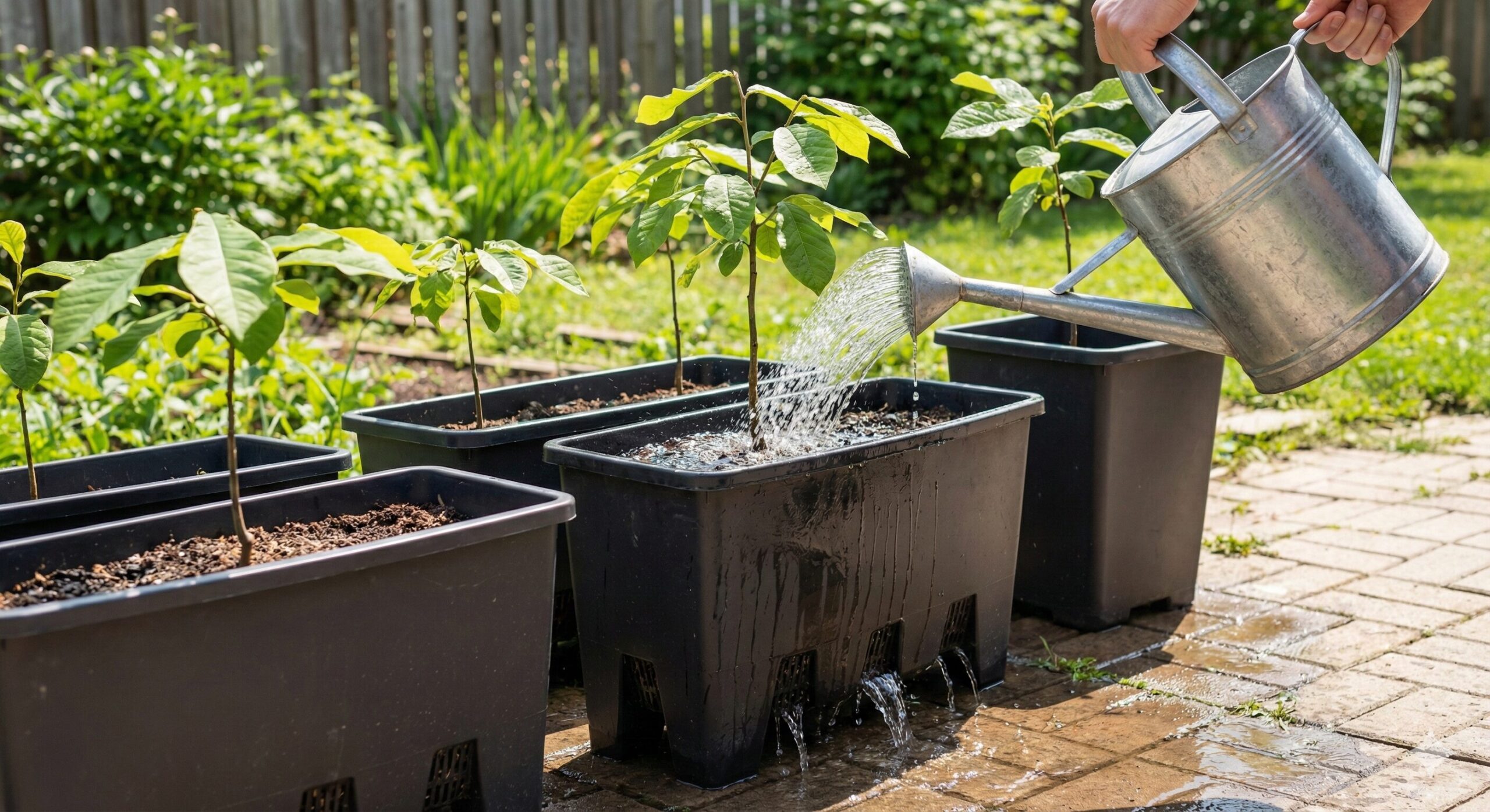 「出る水は多いのに、吸う力は弱い」。このアンバランスな構造のため、ポポーの幼苗は極めて水切れに弱い性質を持っています。特に、小さなロングポットで育てている夏場は危険です。朝に水をたっぷりあげても、猛暑日には夕方になると土がカラカラになり、葉がぐったりとお辞儀をしてしまうことがあります。