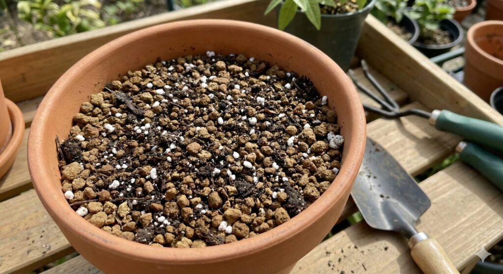 土壌環境においては、「通気性」と「排水性」の両立が不可欠です。レモンバーベナの根は非常に酸素要求量が高く、常に水が停滞している粘土質の土では、根毛が速やかに窒息し、回復不能な根腐れを引き起こします。私は、鉢植えなら赤玉土(小粒)をメインに、腐葉土とパーライトを混ぜたものを推奨しています。市販の「ハーブ用培養土」を使用する場合も、そのままでは保水力が強すぎることがあるため、パーライトや川砂を2割ほど足して、物理的に水がサッと抜ける構造に作り替えるのがコツです。