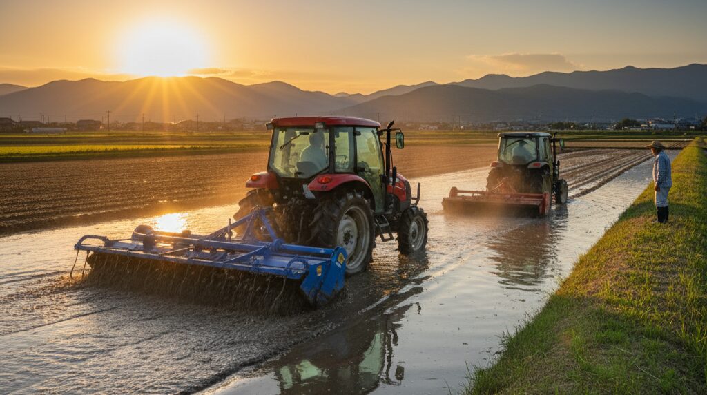 毎年、丁寧に作業しているつもりでも、トラクターで耕うんした後の田んぼがまるで波打ったようになってしまう。これは多くの稲作農家が直面する悩みです。この現象には、トラクターの構造と操作方法に起因するいくつかの明確な原因が存在します。原因を科学的に理解し、対策を講じることが、平らな田んぼづくりの第一歩となります。