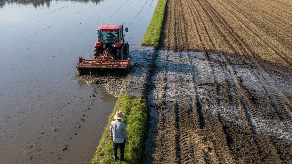 結論として、田んぼの均平作業は、単に圃場の表面を平らにするだけでなく、稲作特有の「湛水栽培」を可能にするための機能的な土壌構造(耕盤)を構築するという、より高度で複雑な目的を持っていると言えるでしょう。この点を理解することが、高品質な米作りへの道を開きます。