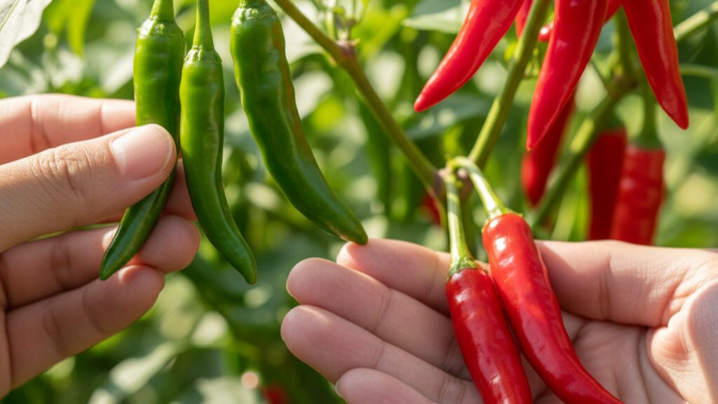 - 青唐辛子と赤唐辛子の最適な収穫タイミングの違い