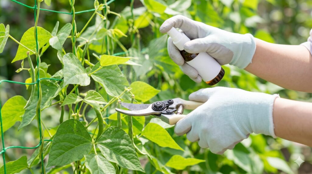インゲン栽培において、最も恐ろしいのが病気による全滅です。特に「モザイクウイルス病」は、一度発生すると治療法がなく、株を抜き取るしかありません。そして、この汁液感染の一因となることがあるのが、私たちが使う「ハサミ」を通じた汁液感染なのです。