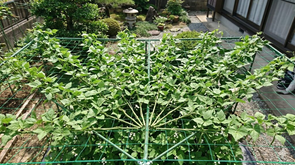 日当たりが悪い場所では、せっかくついたインゲンの莢(さや)が黄色く変色して落ちてしまう「生理落果」が頻発します。これは植物が「これ以上実を養うエネルギーがない」と判断して不要な実を落としている状態。整枝によって日当たりを改善することは、このリストラを防ぎ、一つひとつの実を確実に太らせるために不可欠な作業なのです。
