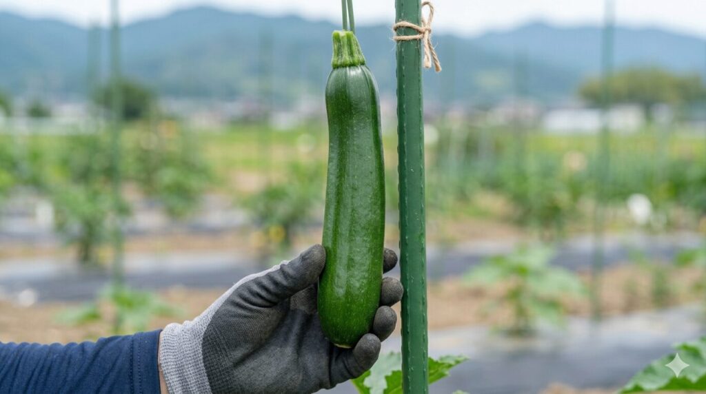 皆さんもぜひ、今年のズッキーニ栽培では支柱を立てて、立体的な垂直仕立てに挑戦してみてください。手間をかけた分、ツヤツヤで美味しい自家製ズッキーニがたくさん採れるはずです。皆さんの家庭菜園が、今年も豊かな実りに包まれることを願っています。ぜひ支柱栽培で、安定して長く収穫できるズッキーニ作りを楽しんでください。