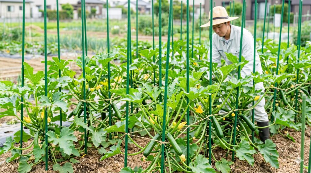 - ズッキーニを支柱で立体的に育てるメリットと病気予防の効果